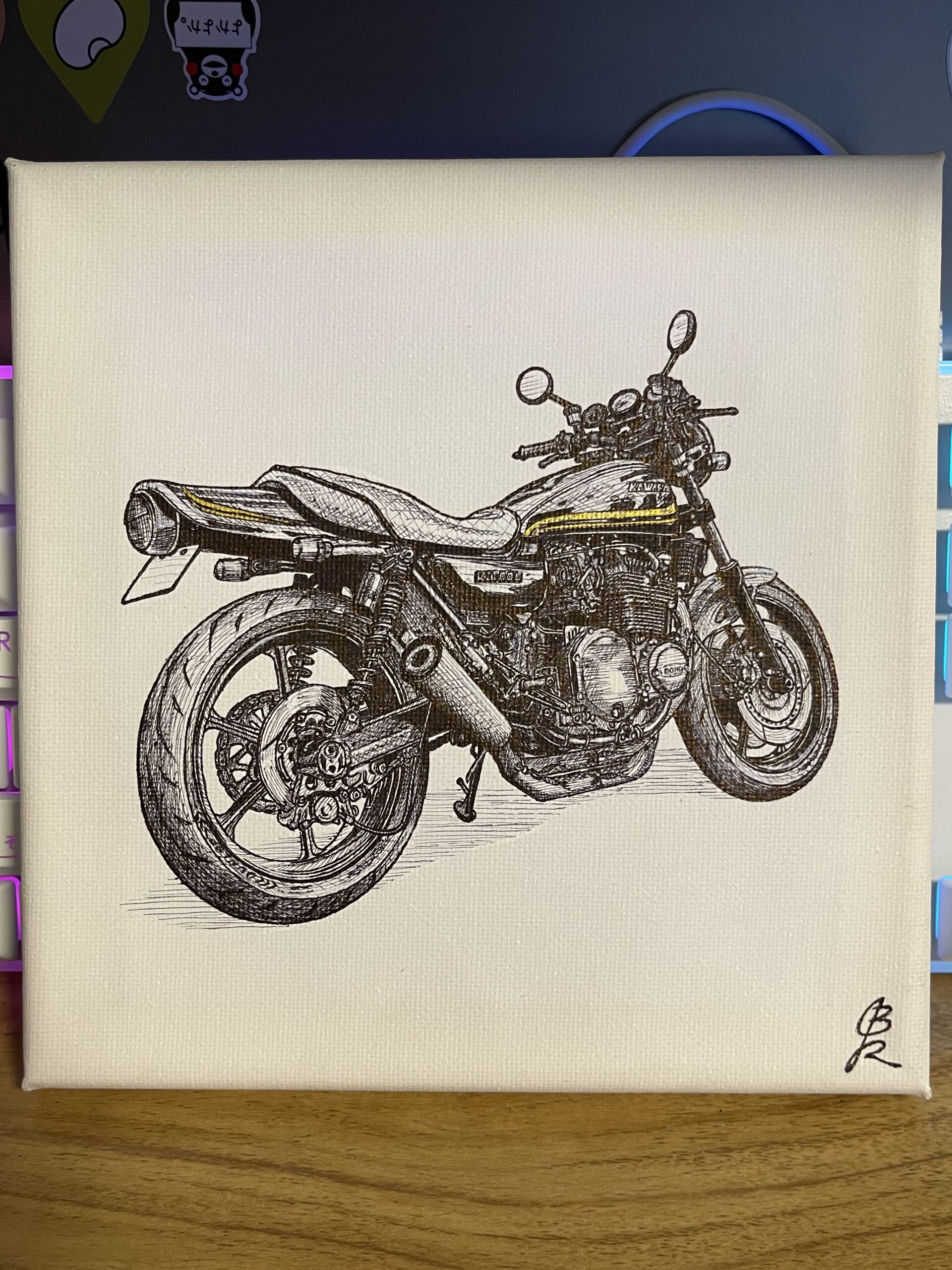 幼少期より絵画や図画工作を得意とし、県知事賞等を受賞。海上自衛隊に勤務していた際は部隊のロゴマークやゆるキャラをデザイン。並行して自身が携わる車やバイクのカスタム業界にてイラストを作成。2024年退職後はモーターサイクルアーティストとしてキャンバスへのボールペン画を作成している。